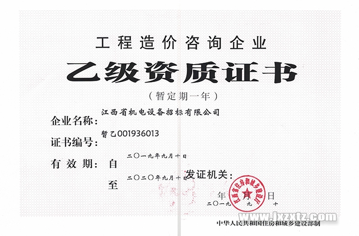 工程造價咨詢企業乙級資質證書